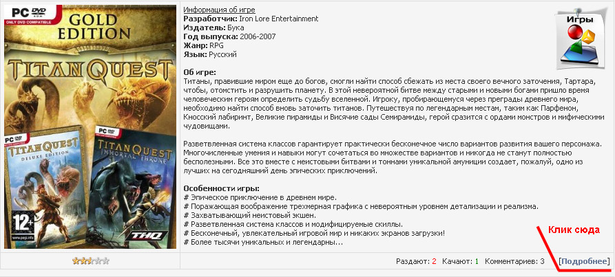 2. Выбираем нужный вам фильм, игру или альбом и жмем "подробнее"